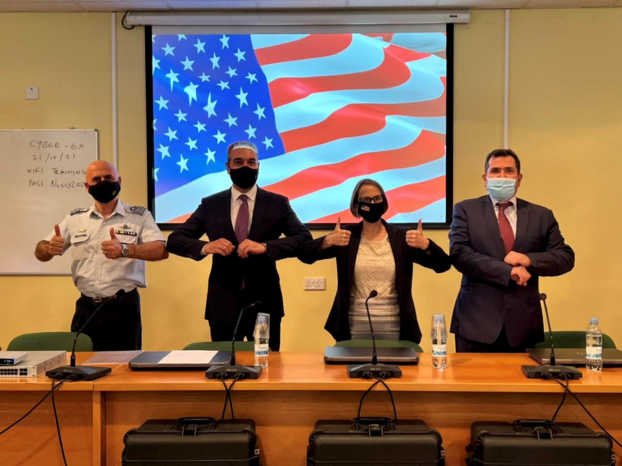 Η Πρόεδρος της Βουλής των Αντιπροσώπων κ. Αννίτα Δημητρίου πραγματοποίησε σήμερα συνάντηση με τον κ. Γιώργο Μιχαηλίδη, Επίτροπο Επικοινωνιών και τον κ. Πέτρο Γαλίδη, Βοηθό Επίτροπο Επικοινωνίας,οι οποίοι συνοδεύονταν από τον κ. Διαμαντή Ζαφειριάδη, Προϊστάμενο Αρχής Ψηφιακής Ασφάλειας, τον κ. Μανώλη Κυριάκου, Συντονιστή Επικοινωνίας και άλλους υπηρεσιακούς, κατά την οποία συζητήθηκαν θέματα ψηφιακής τεχνολογίας και ασφάλειας διαδικτύου, με έμφαση στην ασφάλεια του δικτύου και της ιστοσελίδας της Βουλής.