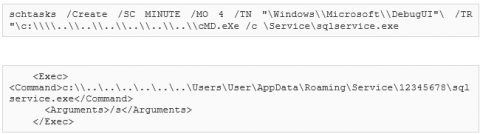 Next, the malware creates a new scheduled task, and it is executed with the /s parameter